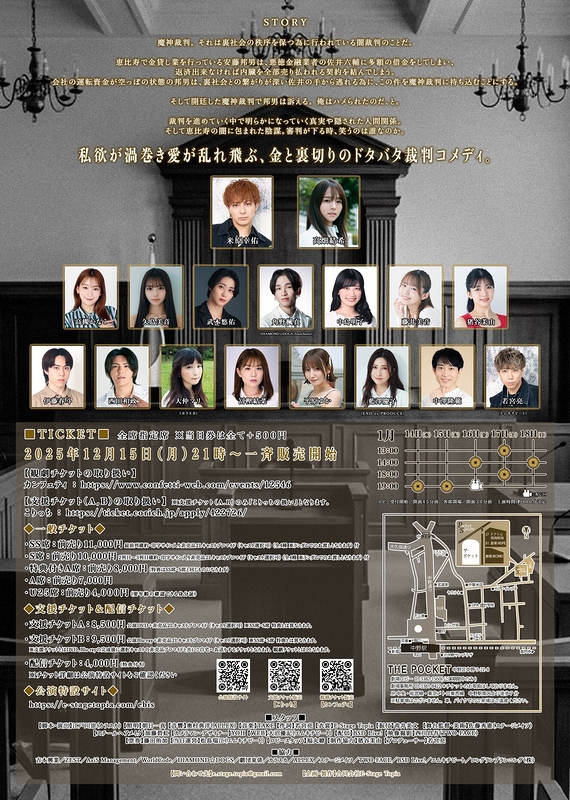 4,000円 ~ 11,000円 【発売日】2025/12/15 (月) 【会場観劇チケット】 SS 席:11,000円 (最前列確約・印字サイン入り非売品2Lブロマイド(全4種※キャスト選択可ランダムでのお渡しになります)付) S 席:10,000円 (2列目.3列目確約・印字サイン入り非売品2Lブロマイド(全4種※キャスト選択可ランダムでのお渡しになります)付) 特典付き A 席:8,000円 (特典はS席のものと同じになります) A 席:7,000円 U25:4,000円(要年齢の確認できる身分証) (全席指定・税込) 当日券は全日程+500円 〜〜〜 【支援チケット】 ・支援チケットA:8500円 (公演DVD+非売品2Lキャストブロマイド(キャスト選択)※S席特典とは異なります。) ・支援チケットB:9500円 (公演Blu-ray+非売品2Lキャストブロマイド(キャスト選択)※S席特典とは異なります。) ※支援チケットとはDVD、Blu-rayの完成後に選択キャストの非売品ブロマイドと共にご自宅へお送りするチケットとなります。観劇チケットとは異なります。 〜〜〜 【配信チケット】 ・配信チケット:4000円(特典付き)※キャストインタビュー・舞台裏側など。※アーカイブは購入日から2週間。 |